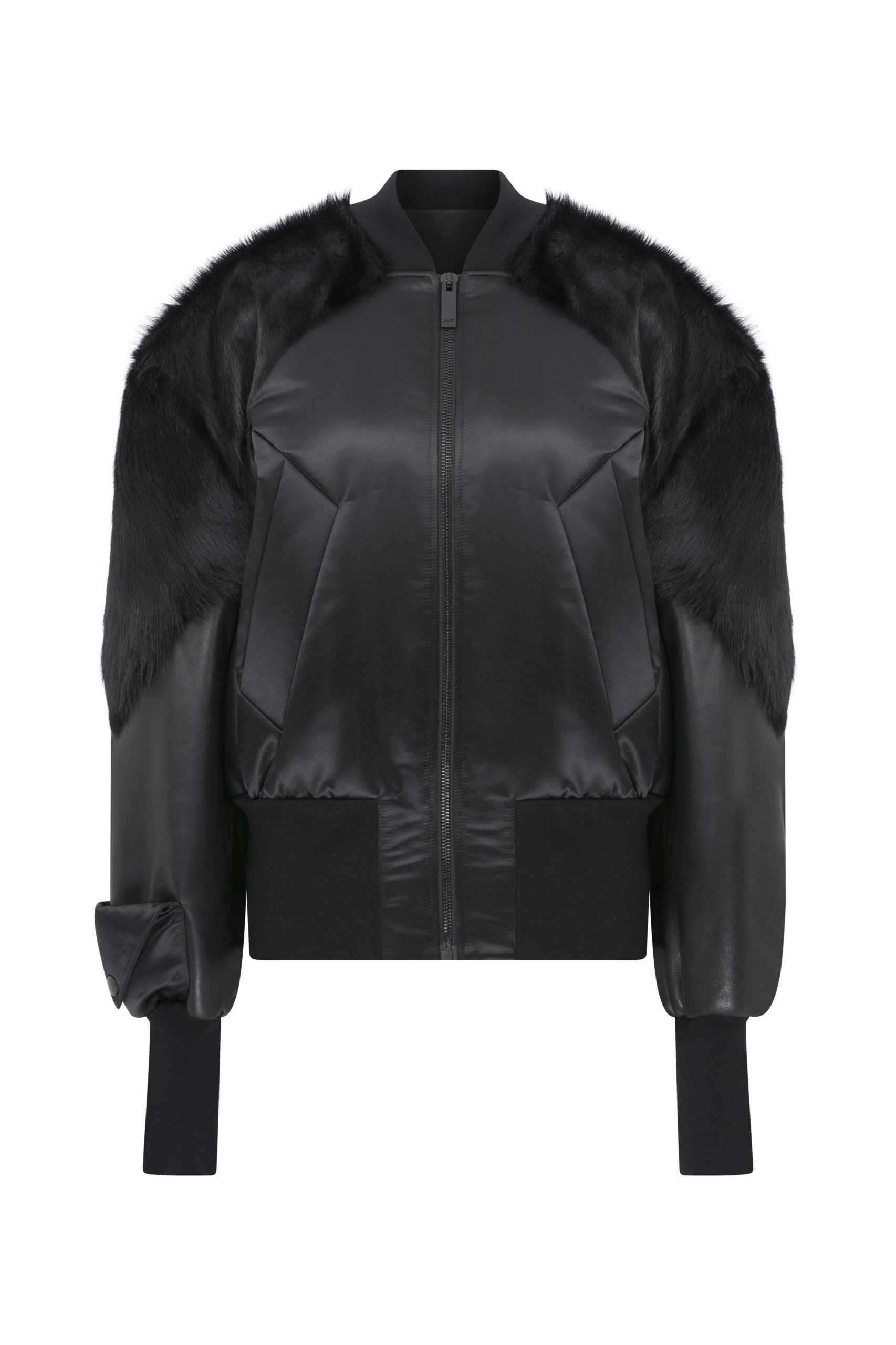 UNISEX SATIN AND CALF HAIR PANELLEDBOMBER JACKET MN/PRES24/LT02