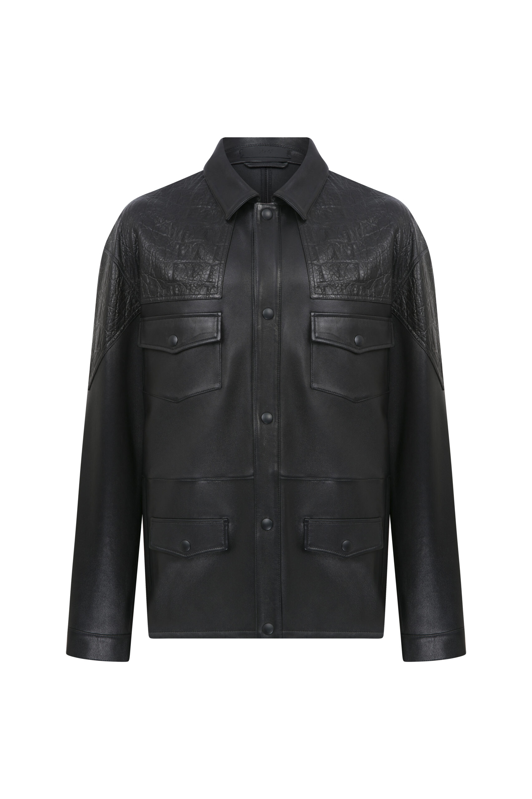 PANELLED LEATHER SHIRT JACKET M/PRES24/LT01