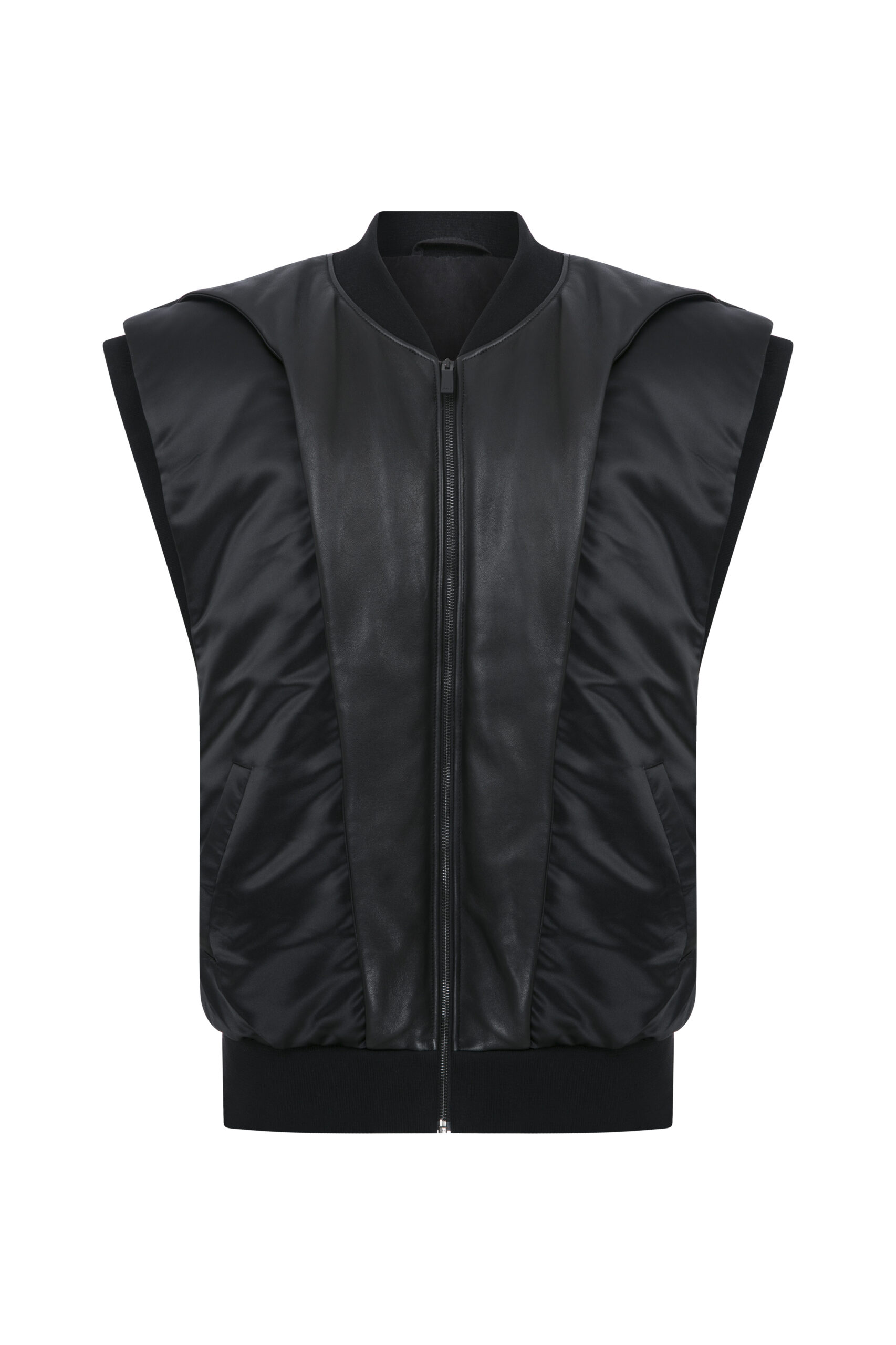 QUILTED DOWN-FILLED SATIN AND LEATHERWAISTCOAT M/PRES24/LT10